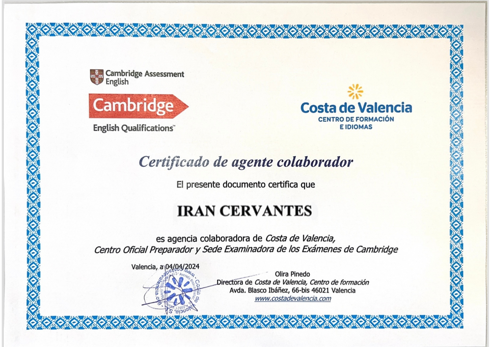 ايران سروانتس نمايندگي شعبه ي والنسياي موسسه سروانتس و موسسه كمبريج (Costa de Valencia) در اسپانياست.